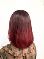 ブリーチを使用してグラデーションベースを作ってから、カラートリートメントのレッドを被せています。根元側にブリーチを使用しないことで赤味の質感もグラデーションになるように工夫しました。