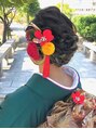 和装のヘアアレンジです!インナーカラーを目立たせるアップスタイルです◎飾りを変えると結婚式、パーティーなどにもオススメ◎