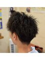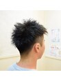 サイドとバックはツーブロックにして、トップ部分は立ち上がりと動きをだして元気よくセットしました(^^)