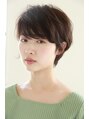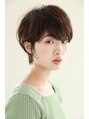 カットは、ハンサムショートの前髪を少し切り込んでマニッシュ風に♪少し柔らかさを出すために、空気感を出せるように質感を調整しました。カラーは、落ち着いた、ブラックブラウンです。柔らかさを出すために、アッシュを少し足しています。
