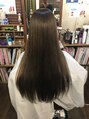 自然光と間接照明などのオレンジのライトが多い場所で同じ色でもこんなに見え方が変わります。同じカメラで同じ設定です。ブリーチ無しでのワンカラーで染めてます。