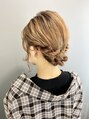 ロープ編みでサイドはねじってゆるっと柔らかく、襟足はすっきりあげたアップスタイルです☆