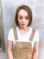 肩上の前下がりボブ!後頭部に丸みをつけて前下がりにする事で綺麗なボブが完成。赤みを抑えたベージュ系で大人っぽい印象を作ります。