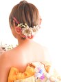 ショートやボブだとアップに出来ないとお悩みの方に!!襟足3cmでもアップに見えるヘアアレンジ♪成人式や結婚式の前撮り、花嫁様のお色直しや二次会にもオススメ♪使用したラフリジーオリジナルの花飾りは、サロン店頭や WEB SHOPでも販売中♪