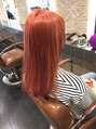 今年人気のアプリコットオレンジです。一回ケアブリーチをしてからAVEDAカラーのオレンジをいれています。是非オススメです。