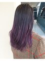 一回全体をケアブリーチしてから暗めのグレーと毛先はバイオレットをいれてグラデーションカラーにしています。アレンジしたり巻いたりしたら可愛いですよ。