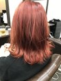 ブリーチ後ブラッドオレンジをオン。スタイルは切りっぱなしボブ。当店取扱いのケアミストで薬剤のダメージを最小限に抑え、元々の髪の強度を高めております。
