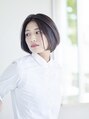 前髪なしのクールなボブですが、きつく見えないやわらかアッシュブラウンなので、しっとりとした優しい印象になります。