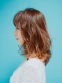 鎖骨下でカットしたセミディスタイル。毛先にすこしレイヤーを入れてふわっと軽い仕上がりになっています。太めのコテを使ってゆるーく巻いてボリュームを出しています。巻いた毛束を細かく割いてほそい束感。出すのがポイント!