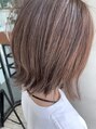 人気の切りっぱなしボブ。毛先はパツンと、でも髪の量は髪質に合わせてしっかり取るのがまとまりやすいコツです◎カラーはランダムにブリーチを入れた後にグレージュを重ねました!ハイトーンでも色持ち良く、伸びても目立たない仕上がりにこだわっています!