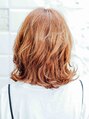 レングスは肩につく長さで切りっぱなしっぽく。バングも巻くので少し長めに目にかかる長さで。巻くのが苦手な方は前髪パーマがオススメ。カラーリングは明るめでオレンジがしっかり出るようにそめました。