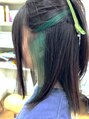 派手すぎず、周りと被らない個性派ヘアになれる緑のインナーカラー♪黒髪との相性も◎