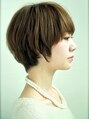 シンプルな中にも小技が光る上級者ショートヘア。ボーイッシュになりがちなショートも、 丸みのあるシルエットにし、柔らかな質感にすることで女性らしい表情に。 前髪は流しやすいように少し斜めにカット。
