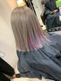 ブリーチを重ねて作った明るさの上にハイトーンミルクティベージュ☆そしてインナーに三色のパステルカラーを仕込みました☆