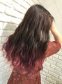 毛先はブリーチして、イルミナカラーのトワイライトでピンクバイオレットに。トップはオーシャンで暗めにカラー。色味のコントラストでグラデーションにしてます。【上野/東上野】