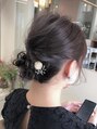 持ち込みのお花のアクセと白のスターチスのドライで合わせて!バランスみてセレクトします^ - ^肩くらいのボブでこのくらいのヘアアレンジ!