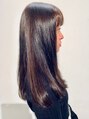 広がりやすい髪質を考慮し、レイヤーは表面に少しだけにし、重さを程よく残してまとまりよく。シャープになりすぎないように顔周りは軽さを。