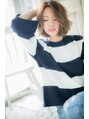 ベージュカラーベースにハイライトなどで動きを出した、メルトカラーでハーフっぽい色合いに☆大き目の無造作ウェーブでラフさのあるカッコイイスタイル。センターパートをざっくり分けてルーズにしてもキマリます。