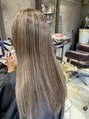 ミルクティー系のベースカラーにまんべんなくハイライトを入れる。ハイライトを何度か重ねることで、明るさの違うミルクティー系のカラーが出るので、何色も色がミックスされてオシャレ度が抜群に上がります☆まさにミルクティーのミルフィーユカラー☆