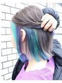 グレージュカラーをベースに、イエローのインナーカラーをたっぷり入れて個性的に仕上げました。ウルフスタイルとベストマッチなカラーです◎
