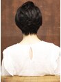 大人なニュアンスのツヤ感を出したショートカット柔らかな質感とメリハリのある後頭部で小顔の効果も期待できます。深めの前髪は、目元を強調し上品な印象に。トップにボリューム感があるので、30代40代のミセスの方にもオススメです。
