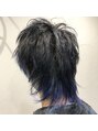 ネイビーベースのカラーに顔まわり、襟足にかけて爽やかなブルーカラーを入れたオシャレカラー