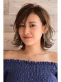 カットベースをアシメにし、大きめカールでボリュームと動きを出したスタイル