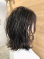 肩ちょうどくらいのミディアムに細めのハイライト、全体はアプリエカラーラベンダーグレージュで染めてます♪ 暗めでも透明感あり!