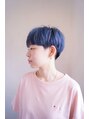 【気に入ったスタイルはブックマークしていただくと便利です】内側と大胆に刈り上げたメンズライクなマッシュショート。KPOP好きなモデルさんだったので、テイストが近くなるように意識しました。カラーはしっかりブリーチして、カラーでブルーにしています。