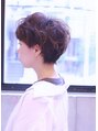 ショートヘアにふんわりとパーマをかけました。潰れがちなトップにボリュームを出して華やかにパーマ、カラー夏の季節ドライヤーの時間を短くしたい人はムースで簡単セット