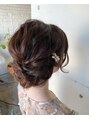 編み込みが入ったシニヨンスタイルです。ゆるふわっとした感じが可愛いく、肩上の長さならハーフアップにアレンジしてあげるとバランスが良いです!