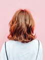 レングスは肩につく長さで切りっぱなしっぽく。バングも巻くので少し長めに目にかかる長さで。巻くのが苦手な方は前髪パーマがオススメ。カラーリングは明るめでオレンジがしっかり出るようにそめました。