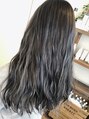 ハイライトの太さを細いのと太いのランダムに入れる事により抜け感のある雰囲気を作れます!ベースの色も黒に近いグレーにしてコントラストの差をつけ上級者感を出しました!ハイライトの明るさはカウンセリングで決められます!