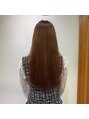 ツヤ感ストレートのロングヘア。前髪をシースルーにして軽やかさを出しています。