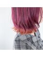 ブリーチがしてある髪にレッドバイオレット&すその部分にオレンジがのせてあるA/Wトレンドカラーです☆外ハネストレートでも巻き髪でも可愛いのでオススメです^ - ^