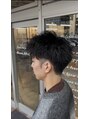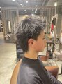 表面の毛は暗めのネイビーブルーで、インナーは少し淡いインディゴブルーに仕上げました♪髪の毛を縛る時などはワンポイントアクセントがあるので可愛いですね♪