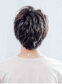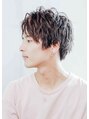 センターパートのバングが印象的なメンズショート。全体にうねるようなスパイラルパーマをかけてワイルドな雰囲気に。その分襟足は短すぎず長さを少し残すことで柔らかいナチュラルな雰囲気になるようバランスを取っています。