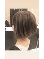 ハイライトをいれてからAVEDAカラーのグレージュ系をいれています。ボブにハイライトを入れることによってツヤ、立体感がでますよ!是非オススメのカラーです。