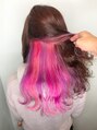 お客様オーダー、ピンク系とバイオレット系を縦に入れてあります。インナーカラーはバリエーションも豊富なので希望等、ご相談ください。