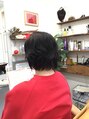 前髪から繋いでレイヤーを入れたボブ風なショート 40代50代60代のトップにボリュームを出す為 若々しく仕上がるように大きめのウエーブ もみあげ、ネープはクセ毛を緩めてシャープな感じに髪質改善してます。