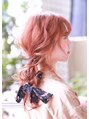 顔周りに少しレイヤーを入れて結びやすいようにカット。普段使いできるスカーフを一緒に編み込んで華やかな印象に◎