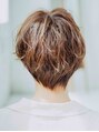 ネープがしっかりとしまってタイトなうえに前下がりの前髪ないショート。カラーは透明感ありつつくすみのある、フォギーベージュで大人っぽさを演出。