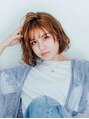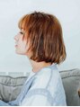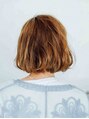 ボブのスタイルの表面にうねりを付けて軽い印象に!カラーリングも透け感があるベージュブラウンにして全体的に柔らかい印象に!前髪はシースルーで抜け感を出しました。