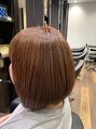前下がりのボブ!ツヤ感のあるカラーとの相性抜群!赤みのハイトーンカラーをしてます!