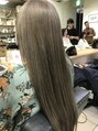 モノトーンとピンクベージュで作るライトグレージュ。ベースはブリーチでしっかりオレンジ味が無くなるまでリフトしています。ケアブリーチを使ってダメージも軽減。