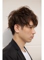 メンズのショートスタイル、両サイドと襟足をスッキリと刈り上げて、マッシュベースのカットにしっかりと動きを出すスクリューカールがポイントです。