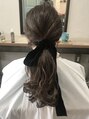 ゆるっとむすんで、ベロアリボンで結んだだけの簡単アレンジ。緩すぎるくらいがちょうど良いです◎
