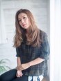 ロングヘアに大きめのカールを加えることにより全体に動きと軽やかさがでてラフな雰囲気になります!そしてカラーリングでグラデーションを入れることによってより毛先の遊びがでてバングも長いので大人っぽくなり大人カジュアルなテイストになります!
