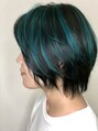ポイントカラーでブリーチしてますベースはダーク系でブリーチ部分に後からターコイズブルーを入れてます