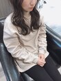 透明感のあるグレージュカラーのお客様。ベースにハイライトも入れているため、より立体感、動きのあるスタイルになっています。